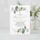 Impresiona a tus invitados con esta hermosa invitación al Bautismo. Cuenta con una elegante vegetación acuática en tonos verde suave y dorado, complementada con elegantes letras. Viene con un patrón de hoja correspondiente en la parte posterior. Apropiado para niños y chicas! Utilice los campos de plantilla para agregar detalles. Si desea cambiar el estilo de fuente, color o ubicación del texto, simplemente haga clic en el botón "Personalizar más adelante".