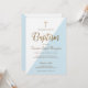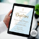 Sé la importancia del bautismo de su hijo. Este evento es algo que se debe valorar y celebrar. He diseñado esta invitación al bautismo simple y moderna usando detalles falsos de oro y tipografía con acento azul triangular. Fuentes de escritura elegantes, una cruz dorada impresa y una plantilla fácil de usar, personalizan esta invitación para el día especial de su hijo. Descarga digital disponible.