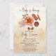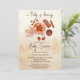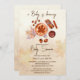 Un bebé está preparando otoño una invitación para una ducha de bebé, una descarga instantánea, agua caliente chocolate café canela especias galletas hojas de arce, fondo marrón para la ducha de bebé con tema de otoño.