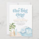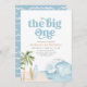 Invite a amigos y familiares a celebrar el primer cumpleaños de su pequeña con esta invitación temática al surf.