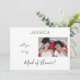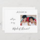 Dale a tus amigos esta simple, blanca y negra con foto, ¿serás mi dama de honor, matrona de honor o chica de flores? Genial para cualquier boda. Vea nuestra carta de bienvenida para ver la versión vertical de la tarjeta de fotos y las versiones en negro. Esta tarjeta es la mejor para imágenes horizontales o paisajísticas.