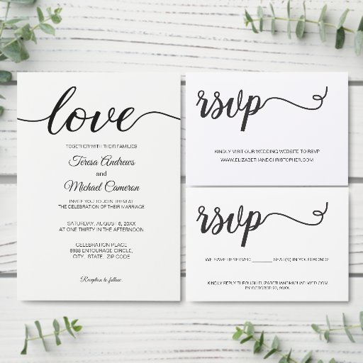 Tipografía moderna, en blanco y negro con el guión "Amor" en rosa. Personalice con sus nombres y detalles bodas, esta elegante disposición y diseño le dan el tono a su romántico y moda evento Boda cristiano.