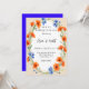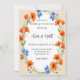 Una delicada pintura acuática con un naranja vibrante y flores silvestres azules suaves. La disposición floral muestra intrincadas pinceladas, mezclando tonos cálidos y fríos para una composición armoniosa inspirada en la naturaleza. Perfecto para los amantes del arte botánico y los Bodas.