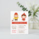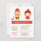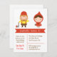 ¡Lance a un fiesta basado en el cuento de hadas de los niños familiares del Caperucita Rojo! Esta invitación linda de la fiesta de cumpleaños tiene los caracteres de la historia con el Caperucita Rojo lindo que lleva una cesta minúscula y del leñador vestida en camisetas largas amarillas de las mangas, pantalones marrones y botas con un hacha en su mano. La página reversa tiene el mún lobo grande o bastante un lobo agradable lindo que se esté aferrando a una manzana. Personalice fácilmente con sus detalles del fiesta.