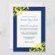 Invitaciones de moda del boda de los azules marinos y del amarillo. La atracción de un azul marino de muy buen gusto moderno con flourish amarillo remolina. Fácilmente personalizar para su día de boda. Flourish por el diseño de Mujka del ©
