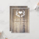 Los tablones de madera del granero ligero rústico y la asta blanca de los ciervos siluetean invitaciones temáticas del boda. Los nombres de novia y del novio están en la escritura blanca. El resto del texto es también blanco. Estas invitaciones son muy elegantes y elegantes y harán una impresión duradera en sus huéspedes.