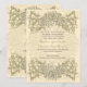 Una frontera del top y de la parte inferior de rosas hace para un aspecto clásico en esta invitación color nata del boda. El texto modificado para requisitos particulares se pone entre las flores mientras que una filigrana de las banderas florales imprime verticalmente detrás del texto. El revés revela la misma imagen para destacar los nombres del par y la fecha de acontecimiento. Disponible en colores alternos con los productos a juego.