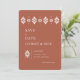 Anuncie su día especial con el cálido y rústico encanto de esta Costa Mexicana Salvemos las Fechas. Estas tarjetas capturan la esencia de una boda de otoño en el suroeste, con un rico y sabroso tono de terracota y elementos de diseño inspirados en la artesanía tradicional mexicana. El color de la barba es perfecto para una próxima boda en otoño, mientras que los sutiles motivos mexicanos le dan un toque de elegancia cultural. Establezca el escenario para una celebración memorable con estas cartas únicas e invitantes para guardar las tarjetas de fecha.