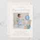 Celebra el gran día de tu pequeño con esta adorable invitación de cumpleaños de un niño de Peter Rabbit que presenta el personaje clásico de una suave acuarela rodeado de juguetones de color azul, menta y oro. Un área de fotos de personalizable te permite resaltar el chico de cumpleaños, mientras que los detalles editables del fiesta hacen que sea fácil de personalizar. Combinando el encanto intemporal de los ilustraciones de Beatrix Potter con acentos festivos y modernos, esta invitación es perfecta para fiestas del jardín, cumpleaños de primavera o cualquier celebración temática de un libro de cuentos.