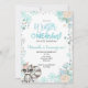 Invitación del cumpleaños de ONEderland del invierno primera con el fondo blanco y los copos de nieve perfectos para el cumpleaños del invierno.