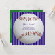 Invitación de cumpleaños de béisbol. Fondo azul con rayas.