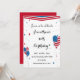 la bandera patriótica estadounidense roja y azul de EE.UU. colorea invitaciones divertidas para fiestas de cumpleaños con confeti y globos en forma de corazón, adecuados tanto para niños como para chicas. ¡Un cumpleaños único invita al día del presidente, el día de la independencia o cualquier otro acontecimiento relacionado con Estados Unidos!