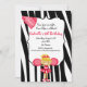 Invitación El cumpleaños rojo rayado cebra de la animadora
