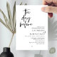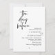 Anuncie su gusto después con estilo con nuestro moderno diseño temático (El día anterior) boda de la carta de invitación a la celebración de ensayo. Es ideal para las parejas que han decidido celebrar la noche anterior a su gran día. Con un diseño sofisticado pero lúdico, esta invitación seguramente marcará el tono para un evento inolvidable. La tarjeta de invitación incluye un moderno diseño de escritura romántico, añadiendo un toque de elegancia eterna a tu celebración. Diseñado por TeeshaDerrick