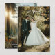 Afortunadamente siempre después o después de la invitación a una boda, con tu propia foto en la parte delantera. En la parte trasera hay un cuadro de un bosque encantado en un paisaje montañoso.