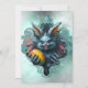 El espeluznante conejo de Pascua, el horror en el nido de Pascua. Un conejo amenazante de color azul-gris, cuyos dientes afilados sobresalen de su boca como pequeñas dagas blancas y sus ojos brillantes y verdes brillan por los aires y iluminan la oscuridad que lo rodea. Parece como si el conejo estuviera exhibiendo orgullosamente a su presa, el gran huevo de Pascua.