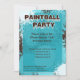 ¡Esta invitación es perfecta para cualquier fiesta de Paintball! Ofrece las salpicaduras azules y blancas de Paintball a través de un fondo de madera.