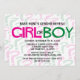 Un género amable revela las invitaciones para una fiesta de bebé. Plantilla es una tipografía muy concentrada en la paleta de colores de verde y rosa con las palabras "Chica" y "niño" y preguntas marcas como el fondo del diseño.