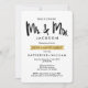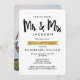 Tarjeta de invitación de la fiesta de compromiso de fotografía de moda con un diseño que incluye las palabras "Mr & Mrs." en una letra manuscrita negra de moda y una cinta de Relieve metalizado de oro falsa debajo de las palabras "Engagement Party". En la parte trasera, el diseño da cabida a una gran fotografía. Personalice el diseño reemplazando el texto y la foto. Póngase en contacto con el diseñador si tiene alguna solicitud de personalización de diseño.