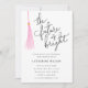 Tarjeta de plantilla moderna para invitados a un partido de graduación con escritura tipográfica con letras a mano que dice "el futuro es brillante". Al lado hay un ilustracion de una placa rosa clara. Puedes añadir la foto del graduado en la parte posterior de la tarjeta. Excelente tanto para graduados de secundaria como universitarios.