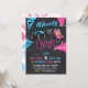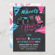 Ruedas o tacones. El género rosa o azul divertido revela invitaciones. Borde de pizarra oscuro y ilustraciones bonitos. Todo el texto debajo de Ruedas o Talones es personalizado a su fiesta.