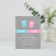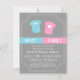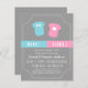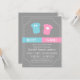 ¡Invite a sus huéspedes que compartan en sus noticias especiales! ¿Muchacho o chica? La invitación tiene camisetas del bebé, una en azul con una pajarita y la otra en rosa con un corazón. Fondo gris neutral del género para no dar el género lejos. Personalice fácilmente con sus detalles del fiesta.
