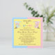 Apreciables invitaciones personalizadas Baby Gender Reveal fiesta Baby Shower con lindos bebés personalizados y conejitos de juguete sobre un fondo amarillo con un marco color rosa y azul bonito con manchas blancas. El texto es totalmente personalizable para satisfacer sus necesidades y los objetos de diseño se pueden mover y cambiar de tamaño. Las invitaciones son ilustradas en ambos lados. www.revoleclipart.