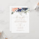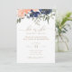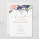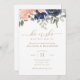 Invitar a amigos y familiares a una revelación de género con esta hermosa invitación, con flores de color rosa y azul de agua con tipografía de oro.