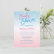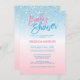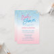 Las tarjetas únicas personalizadas de las invitaciones de la fiesta de bienvenida al bebé en turquesa y pastel azules se ruborizan rosa en un diseño simple con falso confeti asperjado del efecto metalizado de oro. Letras modernas y de moda de la escritura. Perfeccione para un género tema revelan, unisex, neutral, del muchacho o del chica de ducha del fiesta. Apoye de tarjeta - tiene el apellido o nombre del bebé de la opción. Estas plantillas de la invitación se pueden corregir con su información. ¡Consiga a los pegatinas a juego del favor!