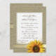 Burlap y Sunflower rústico personalizable de invitación a la boda con su propio texto y estilo de letra.