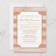 ¡Aquí están las primeras invitaciones modernas a la comunión sagrada con glamour! Los invitaciones tienen un marco ornamental blanco y detalles de texto de color dorado sobre rayas horizontales blancas de color sobre puntos de polka purpurina de oro falso. Puede personalizar o cambiar la información a su gusto. El diseño se ve mejor con la opción de papel estilo esquinas redondeadas.