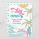 La invitación a la fiesta de cumpleaños 1° de Big One Retro Surf Todos los diseños son © PIXEL PERFECTION FIESTA LTD