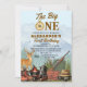 La invitación de cumpleaños número uno de The Big One Hunting & Camping: Celebre el primer cumpleaños de su pequeño aventurero con esta invitación de fiesta rústica y al aire libre. Con un tema vintage de "Un feliz campista", esta plantilla editable captura el espíritu del gran aire libre con animales del bosque, una ilustración de un ciervo (macho), detalles de una hoguera acogedora y elementos de camping que aportan un ambiente aventurero a su celebración. Perfecta para niños que aman la naturaleza, la caza y la exploración, este diseño establece el tono para una fiesta de cumpleaños número uno llena de diversión con temática de camping o bosque.