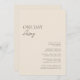 Beis Moderno Y Whimsical Script A Un Día De La Carta De Invitación A La Cena De Ensayos. Celebra tu día especial con esta elegante y hermosa tarjeta de invitación a la boda para embellecer tu ocasión especial. Todos los textos están preorganizados para que puedas personalizarlos fácil y rápidamente con tus propios detalles.