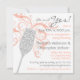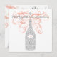 Botella de plata/gris diseñada de encaje moderna del champán adornada con las burbujas, las uvas, las vides y los pájaros del amor. Una explosión del melocotón/del aerosol rosado termina esta diversión con todo la tarjeta elegante. El otro papel secundario al champán/a la copa de vino de encaje del estilo. Muy único y grande para el compromiso, la ducha nupcial, los fiestas de Bachelorette o las celebraciones de la noche de los chicas hacia fuera. Modifique esta invitación para requisitos particulares con su propio texto. Ilustracion original por el pj_design.