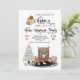Hogar es donde el Hygge es Navidades invitaciones a fiestas de vacaciones. Excelentes y acogedoras invitaciones con un interior escandinavo nórdico en un paladar de colores neutros. Cuenta con una bonita cabaña, un árbol de Navidad, gatos gatos gatos, chimenea y una cómoda silla con mantas y almohadas.