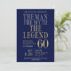 ¡Su vida ha sido una gran aventura! Esta fabulosa invitación a la fiesta sorpresa de cumpleaños número 60 de los hombres de azul marino que dice "El hombre el mito la leyenda" en un tipo de letra clásico en plata y oro sería perfecta para pedirle a la gente que se una a ustedes mientras celebran al hombre en el cumpleaños número 60 de su vida. Esta invitación es de diseño, moderna y contemporánea. Para ver sus invitaciones únicas, seleccione "Personalizar esta plantilla" y escriba su información. ¡Es muy fácil!