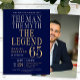 ¡Su vida ha sido una gran aventura! Esta fabulosa invitación a la fiesta sorpresa de la foto de los 65 años de los hombres de azul marino que dice "El hombre el mito la leyenda" en una fuente clásica de plata y oro sería perfecta para pedirle a la gente que se una a ustedes mientras celebran al hombre en el cumpleaños 65 de su vida. Esta invitación es de diseño, moderna y contemporánea. Para ver tus invitaciones únicas selecciona "Personalizar esta plantilla", sube una foto favorita y escribe tu información y sube una foto favorita. ¡Es muy fácil!