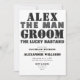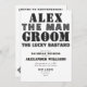 Elige esta invitación para una fiesta de soltero y levanta tus gafas a la camaradería y al futuro novio. Esta singular invitación a una solterona muestra una tipografía audaz con el nombre del Groom y el texto: El hombre, el Groom, el bastardo de la suerte, marcando el tono para un torbellino de risas, camaradería y las mejores aventuras. Levanta tus lentes en un brindis al futuro novio, a la fraternidad y momentos inolvidables. ¡Saludos a la gran final, y que el espíritu de esta aventura viva en sus corazones para siempre! **Personalice el diseño con sus detalles, y solicite las invitaciones de su personalizado y los suministros de fiesta ahora. ***Para las órdenes del personalizado, no realice su pedido. Haga clic en el botón "Mensaje" y envíeme su solicitud. Se le enviará un enlace a su producto por correo electrónico una vez que el artículo esté disponible. Use ese enlace para realizar su pedido. Por favor, espere hasta 48 horas. Gracias!