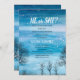 Nieve enamorada, tierra maravillosa de invierno, azul, blanco, copos de nieve, árboles de invierno género revelan invitación. Elegantes, hermosas invitaciones para una ducha de bebé. Pintura de acuarela pintada a mano del bosque por mí misma. Personalízalo con tus detalles.