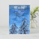 Nieve enamorada, tierra maravillosa de invierno, azul, blanco, copos de nieve, árboles de invierno género revelan invitación. Elegantes, hermosas invitaciones para una ducha de bebé. Pintura de acuarela pintada a mano del bosque por mí misma. Personalízalo con tus detalles.