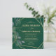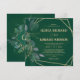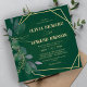 Marco geométrico Invitación a bodas cuadradas Nuestra versátil tarjeta boda se mezcla perfectamente con cualquier tema boda. La elegante combinación de un marco geométrico dorado, hojas verdes y doradas, y un fondo verde, garantiza una perfecta armonía con el entorno moderno y tradicional. Ya sea que esté planeando una ceremonia íntima en el jardín o un gran baile, esta carta le añade sin esfuerzo un toque de belleza intemporal.
