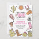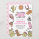 ¡Ensillar para un buen momento rootin’ con esta retro invitación de cumpleaños de una vaquera occidental! Perfecto para el primer rodeo de tu pequeña, este adorable diseño cuenta con obras de arte occidental vintage, gingham rosa y detalles encantadores de una vaquera para una celebración digna de yee-haw. Ya sea que estés lanzando un Wildest One en la fiesta de cumpleaños de Occidente o un fiesta con temática de cowgirl, esta invitación prepara el escenario para un divertido día de botas, hebillas y torta de cumpleaños. Personaliza los detalles y prepárate para reunir a amigos y familiares para una inolvidable celebración de cumpleaños occidental.