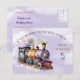El motor del tren acuático más lindo invitando a amigos a la fiesta de cumpleaños de un niño. Esta es la versión de postal de esta invitación, también he hecho una invitación cuadrada de tarjeta plana replicando esta.