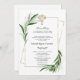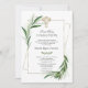 Elegante diseño de cartas con hojas y ramas de oliva acuarelas, moderno marco doble falso dorado, marco falso dorado, sobre un fondo blanco. En la parte posterior, el único marco dorado con hojas de oliva. Utilice la herramienta Personalize para agregar su información. Para ver los elementos coincidentes, por favor, visite mi colección de eventos religiosos encantadores.