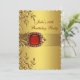 Elegante invitación de fiesta de cumpleaños de oro y joyas rojas de la mujer.
