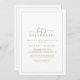 Este oro minimalista celebremos la invitación es perfecto para una simple fiesta de compromiso, boda tras fiesta, retiro, graduación o cualquier evento feliz. El moderno diseño romántico presenta una tipografía clásica en oro y blanco, acompañada de una caligrafía rústica y elegante con un estilo de letra a mano vintage. Personalizable de cualquier color. Mantenga el diseño simple y elegante, tal como está, o lo personaliza añadiendo sus propios gráficos y obras de arte.