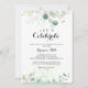 Esta rústica medalla de oro de eucalipto celebremos la invitación a la fiesta es perfecta para una simple fiesta de compromiso, una fiesta de soltera, una jubilación, graduación, boda tras fiesta o cualquier evento o fiesta. Este diseño artístico presenta una floración dorada a mano y eucaliptos de color agua, un follaje verde inspirador de la belleza natural.