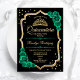 Invitación El oro verde esmeralda negro elegante Quinceanera
