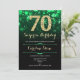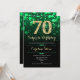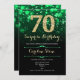 Sorpresa 70.ª invitación a la fiesta de cumpleaños. Elegante diseño verde esmeralda y negro con falso oro purpurina. Cuenta con diamantes elegantes, luces de bokeh y fuente de guiones. Invitación de cumpleaños de hombres o mujeres. Perfecto para una elegante fiesta de cumpleaños. Personaliza con tus propios detalles. Mándame un mensaje si necesitas más personalización. Invitaciones Zazzle impresas o una plantilla imprimible digital de descarga instantánea.